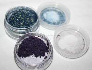 Beide Pigmentabfüllungen (und da ist richtig viel drin!!) sind von MAC: Grape und Steel Blue.
